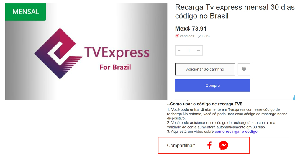 b. Compartilhe o link da página do produto Tvexpress no Facebook ou Whatsapp.